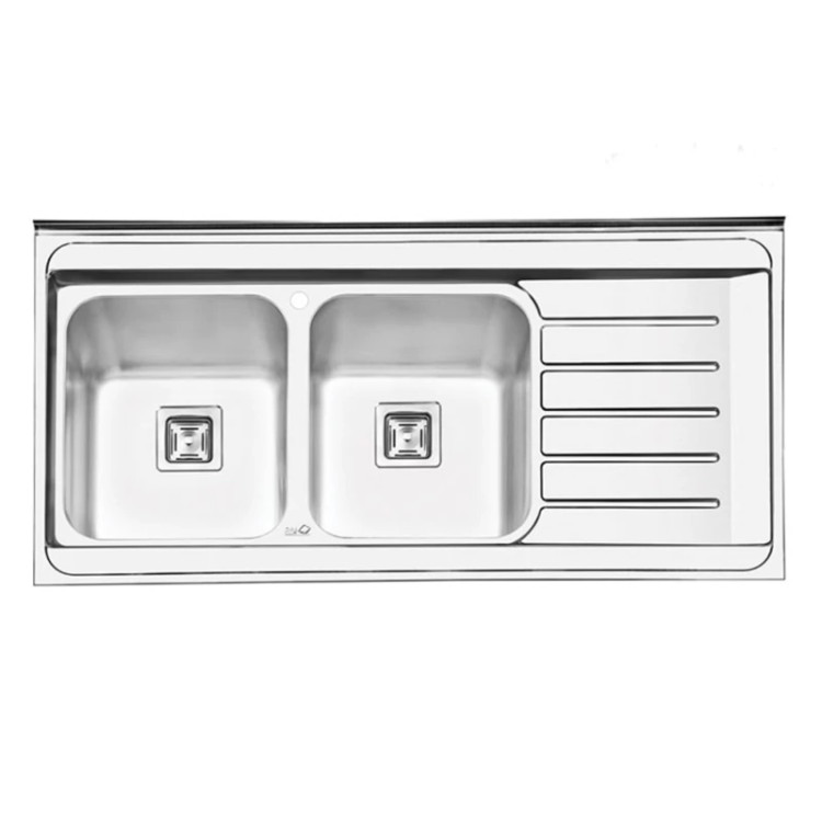 ابعاد محصول : 60 * 120 سانتیمتر نام : سینک ظرفشویی ایلیا استیل 1060 | Sink iliasteel 1060 outset نوع نصب : روکار ضخامت ورق لگن : 0/8 میلیمتر عمق لگن : 22 سانتیمتر سمت لگن : چپ و راست به انتخاب مشتری ظرفیت گنجایش لگن : 60 لیتر جنس ورق : استیل 18/10 ضد زنگ بسته بندی مقاوم و نایلون شیرینگ سر ریز بر روی سینی : ندارد سیفون همراه محصول : دارد محل نصب شیر : دارد با قابلیت نصب انواع مدل شیرالات زیراب : دارای زیراب فانتزی مربع با تخلیه سریع دارای عایق صدا کف لگن ها : دارد