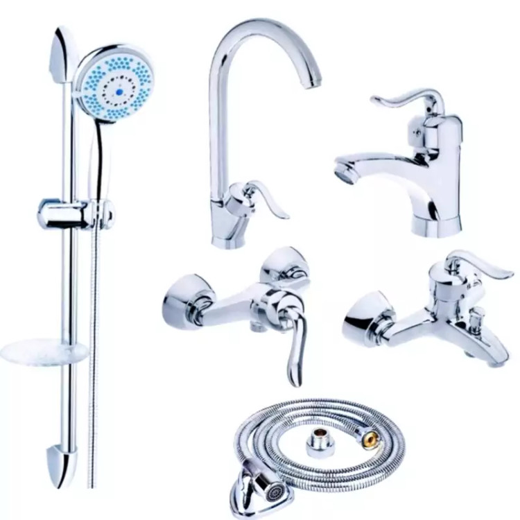 ست 6 تایی شیرآلات مدل قاجاری کروم با شیر ظرفشویی علم عصایی با علم دوش تک کاره و شیلنگ توالت برند محصول ایران گروه میباشد با 7 سال گارانتی معتبر و استاندارد ملی ایران تنه برنجی سنگین و آبکاری درجه یک و کاتریج پر فشار همراه با لوازم و اتصالات نصب شامل : 1عدد شیر روشویی- 1عدد شیر آفتابه - 1عدد شیر دوش - 1عدد شیر ظرفشویی علم عصایی- 1عدد علم دوش تک کاره - 1عدد شیلنگ توالت کروم ارسال به سراسر کشور در کمترین زمان
