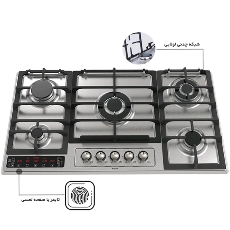 مدل محصول : گاز رومیزی آلتون – ALton مدل S520D ابعاد محصول : 90 * 50 سانتی متر جنس بدنه اجاق : استیل 304 طراحی زیبا با امکان عدم گرم شدن ولوم ها توان شعله ها : بزرگ : 2/3KW, پلوپز : 3/1KW, پلوپز کوچک 2/5KW, کوچک : 1/2KW, متوسط : 1/75KW تعداد شعله اجاق گاز : 5 شعله فندک اتوماتیک : دارد ( به محض چرخاندن ولوم ) ترموکوپل تاپ تایم ( سریع ) : دارد سمت پلوپز : وسط دارای یک شعله پلوپز وک و یک پلوپز مینی وک ویژگی بارز : مجهز به شعله ی زمان دار با قطع کن اتومات رده مصرف انرژی: رده مصرف انرژی A دارای : پوشش آسان تمیز شونده برای روغنگیرها مجهز به سرشعله پلوپز با راندمان بالا زمان سنج لمسی برای هر شعله : دارد سایر ویژگی ها : شبکه چدنی لولایی مقاوم در برابر حرارت مدت ضمانت : 24 ماه ضمانت از تاریخ نصب توسط خدمات کارخانه و نصب رایگان