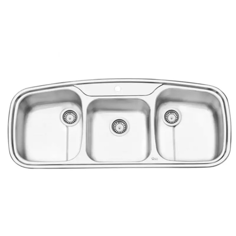 ابعاد محصول : 51 * 116 سانتیمتر نام : سینک ظرفشویی ایلیا استیل 2015 | Sink iliasteel 2015inset نوع نصب : توکار ضخامت ورق لگن: 0/8 میلیمتر ویژگی بارز : دارای 3 لگن بزرگ عمق لگن بزرگ : 22 سانتیمتر عمق لگن کوچک : 18 سانتی متر ظرفیت لگن : 79 لیتر بسته بندی مقاوم و نایلون شیرینگ جنس ورق : استیل 18/10 ضد زنگ دارای نوار آب بندی ( PU ) به همراه عایق صدا