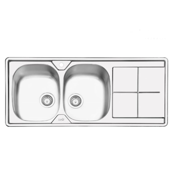 ابعاد محصول : 50 * 120 سانتیمتر نام : سینک ظرفشویی ایلیا استیل 2041 | Sink iliasteel 2041 inset نوع نصب : توکار ضخامت ورق لگن : 0/8 میلیمتر عمق لگن : 22 سانتیمتر سمت لگن : چپ و راست به انتخاب مشتری ظرفیت گنجایش لگن : 60 لیتر جنس ورق : استیل 18/10 ضد زنگ نوع اتصال سینک به کابینت : بست فلزی بسته بندی مقاوم و نایلون شیرینگ سر ریز بر روی سینی : ندارد سیفون همراه محصول : دارد محل نصب شیر : دارد با قابلیت نصب انواع مدل شیرالات زیراب : دارای زیراب فانتزی دایره با تخلیه سریع آببندی : دارای نوار آب بندی ( PU ) دارای عایق صدا کف لگن ها : دارد