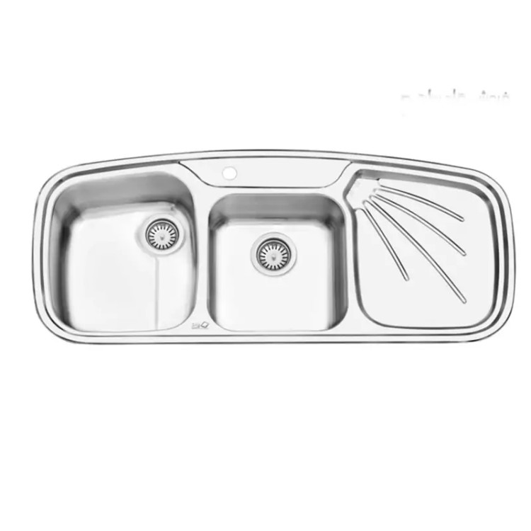 ابعاد محصول : 51 * 116 سانتیمتر نام : سینک ایلیا استیل 2013 | Sink iliasteel 2013 inset نوع نصب : توکار ضخامت ورق لگن : 0/8 میلیمتر عمق لگن : 22 سانتیمتر نوع لگن : معمولی سمت لگن : چپ و راست به انتخاب مشتری ظرفیت لگن : 51 لیتر جنس ورق : استیل 18/10 ضد زنگ سر ریز سینی : دارد دارای عایق صدا در کف لگن : دارد