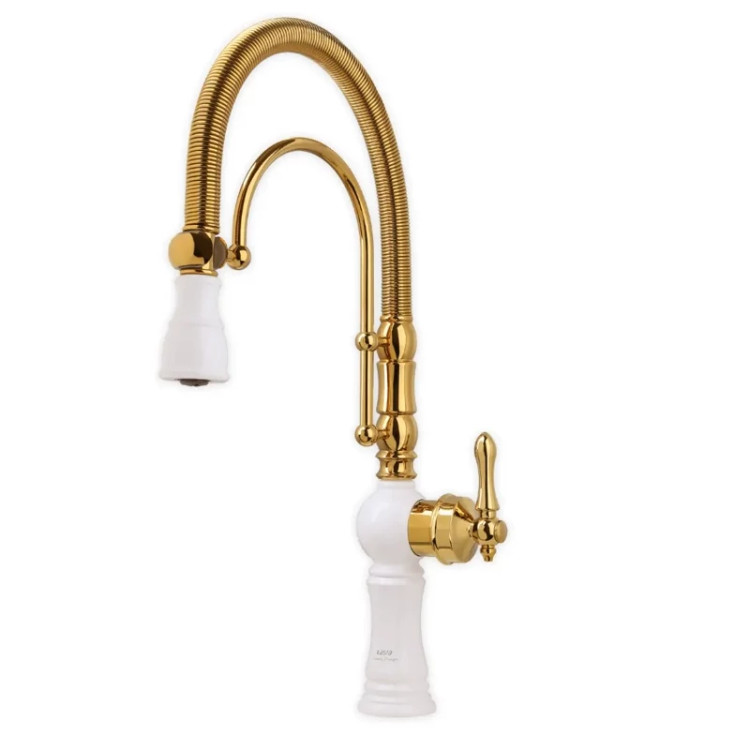 شیر ظرفشویی فنری ونوس سفید طلایی برند ایران گروه با ۷ سال گارانتی معتبر استاندارد ملی ایران تنه برنجی سنگین آبکاری درجه یک همراه با اقلام نصب