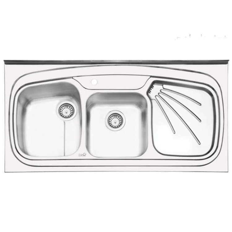 ابعاد محصول : 60 * 120 سانتیمتر نام : سینک ایلیا استیل 1013 | Sink iliasteel 1013 outset نوع نصب : روکار ضخامت ورق لگن : 0/8 میلیمتر عمق لگن بزرگ : 22 سانتیمتر نوع لگن : معمولی سمت لگن : چپ و راست به انتخاب مشتری ظرفیت لگن : 51 لیتر جنس ورق : استیل 18/10 ضد زنگ سر ریز بر روی سینی : دارد دارای عایق صدا در کف لگن ها