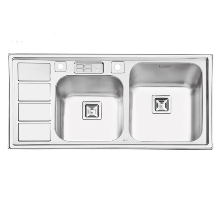 ابعاد محصول : 50 * 100 سانتیمتر نام : سینک ظرفشویی ایلیا استیل 2052 | Sink iliasteel 2052 inset نوع نصب : توکار ضخامت ورق لگن : 0/8 میلیمتر عمق لگن : 22 سانتیمتر نوع طراحی لگن : باکسی R60 سمت لگن : چپ و راست به انتخاب مشتری ظرفیت گنجایش لگن : 53 لیتر جنس ورق : استیل 18/10 ضد زنگ نوع اتصال سینک به کابینت : بست فلزی بسته بندی مقاوم و نایلون شیرینگ سر ریز بر روی سینی : ندارد سیفون همراه محصول : دارد جامایع و جا اسکاجی متصل : دارد محل نصب شیر : دارد با قابلیت نصب انواع مدل شیرالات زیراب : دارای زیراب فانتزی مربع با تخلیه سریع آببندی : دارای نوار آب بندی ( PU ) دارای عایق صدا کف لگن ها : دارد