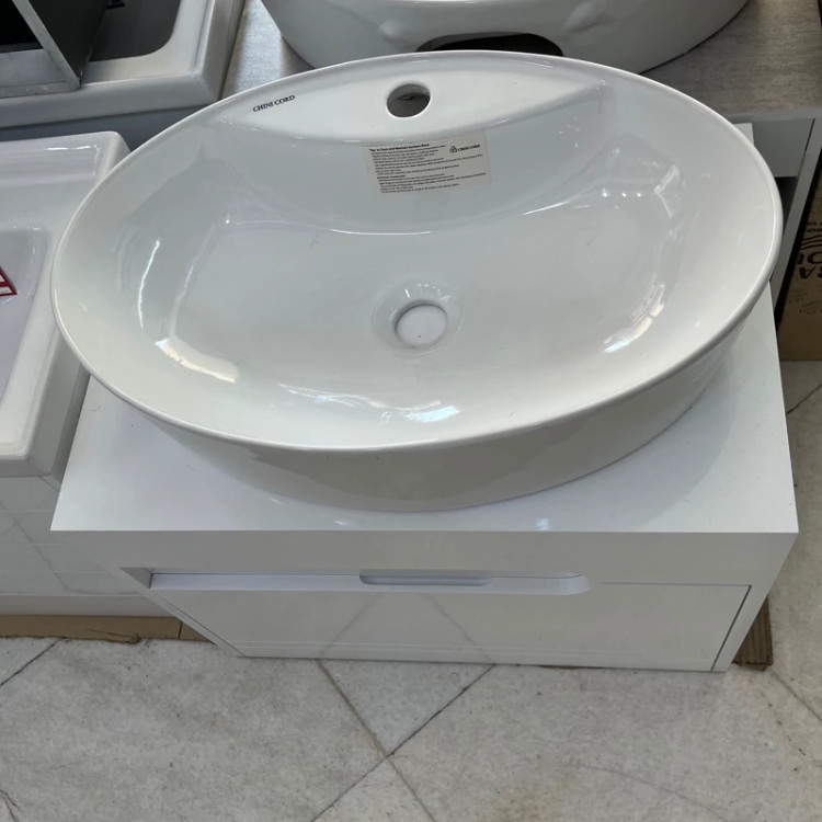 روشویی کابینتی pvc سفید سایز 60 در 40 با سنگ چینی کرد