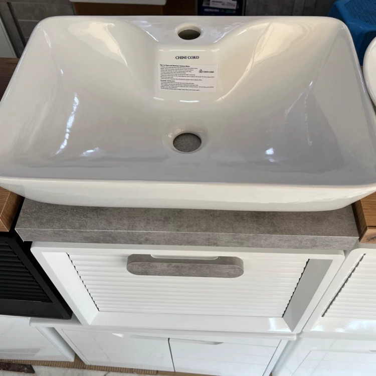 روشویی کابینتی pvc سایز 50 در36 سفید پتینه با سنگ چینی کرد