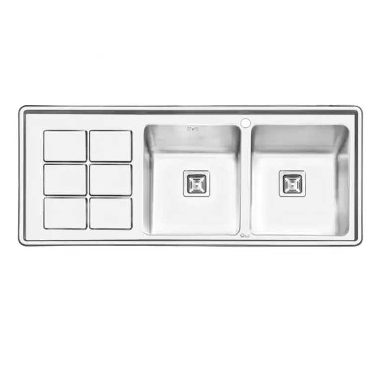 ابعاد محصول : 50 * 120 سانتیمتر نام : سینک ظرفشویی ایلیا استیل 2064 | Sink iliasteel 2064 inset نوع نصب : توکار ضخامت ورق لگن : 0/8 میلیمتر عمق لگن : 22 سانتیمتر نوع طراحی لگن : باکسی R60 سمت لگن : چپ و راست به انتخاب مشتری لوازم جانبی همراه : تخته برش چوبی – سبد استیل ظرفیت گنجایش لگن : 60 لیتر جنس ورق : استیل 18/10 ضد زنگ نوع اتصال سینک به کابینت : بست فلزی بسته بندی مقاوم و نایلون شیرینگ سر ریز بر روی سینی : ندارد سیفون همراه محصول : دارد محل نصب شیر : دارد با قابلیت نصب انواع مدل شیرالات زیراب : دارای زیراب فانتزی مربع با تخلیه سریع آببندی : دارای نوار آب بندی ( PU ) دارای عایق صدا کف لگن ها : دارد