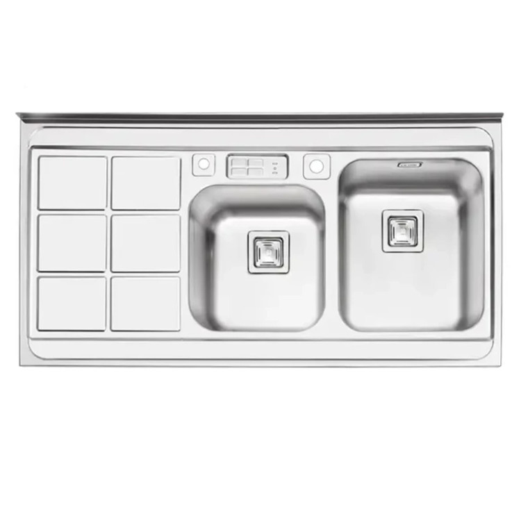 ابعاد محصول : 60 * 120 سانتیمتر نام : سینک ظرفشویی ایلیا استیل 1065 | Sink iliasteel 1065 outset نوع نصب : روکار ضخامت ورق لگن : 0/8 میلیمتر عمق لگن : 20 سانتیمتر سمت لگن : چپ و راست به انتخاب مشتری نوع طراحی لگن : طراحی باکسی R60 ظرفیت گنجایش لگن : 60 لیتر جنس ورق : استیل 18/10 ضد زنگ بسته بندی مقاوم و نایلون شیرینگ سر ریز بر روی سینی : ندارد سیفون همراه محصول : دارد محل نصب شیر : دارد با قابلیت نصب انواع مدل شیرالات محل نصب جا مایع + جا اسکاجی : دارای جامایع متصل زیراب : دارای زیراب فانتزی مربع با تخلیف سریع دارای عایق صدا کف لگن ها : دارد