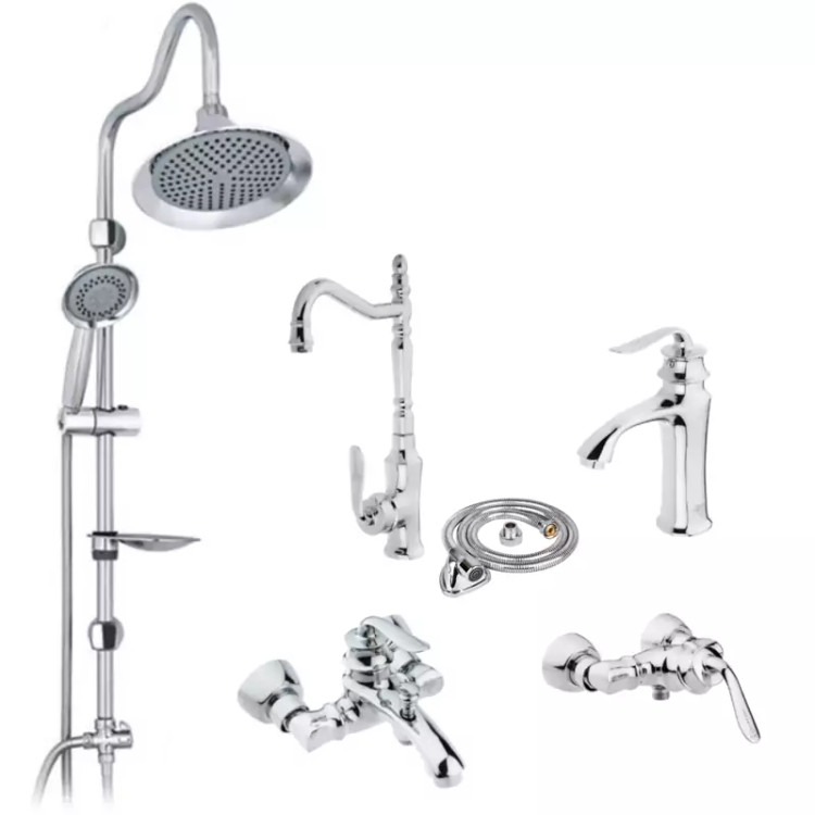 ست 6 تایی شیرآلات هلن کروم تنه سنگین با علم دوش شیپوری و شیلنگ توالت