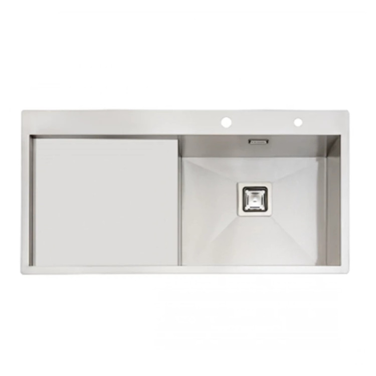 ابعاد محصول : 50 * 100 سانتیمتر نام : سینک ظرفشویی ایلیا استیل 6031 | Sink iliasteel 6031 inset نوع نصب : توکار ضخامت ورق لگن : 1 میلیمتر عمق لگن : 20 سانتیمتر نوع طراحی لگن : طراحی دست ساز R0 سمت لگن : چپ و راست به انتخاب مشتری لوازم جانبی همراه : تخته برش – سبد – جامایع جنس ورق : استیل 18/10 ضد زنگ نوع اتصال سینک به کابینت : بست فلزی بسته بندی مقاوم و نایلون شیرینگ سر ریز بر روی سینی : ندارد سیفون همراه محصول : دارد محل نصب شیر : دارد با قابلیت نصب انواع مدل شیرالات زیراب : دارای زیراب فانتزی مربع با تخلیف سریع آببندی : دارای نوار آب بندی ( PU ) دارای عایق صدا کف لگن ها : دارد