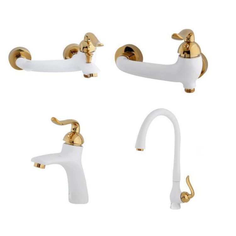 ست کامل شیرآلات آرچر سفید طلایی ( ایران گروه با 7 سال گارانتی)