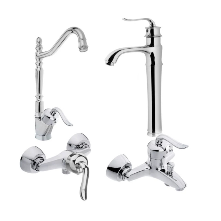 ست 4 تیکه شیرآلات قاجاری کروم با شیر روشویی پایه بلند