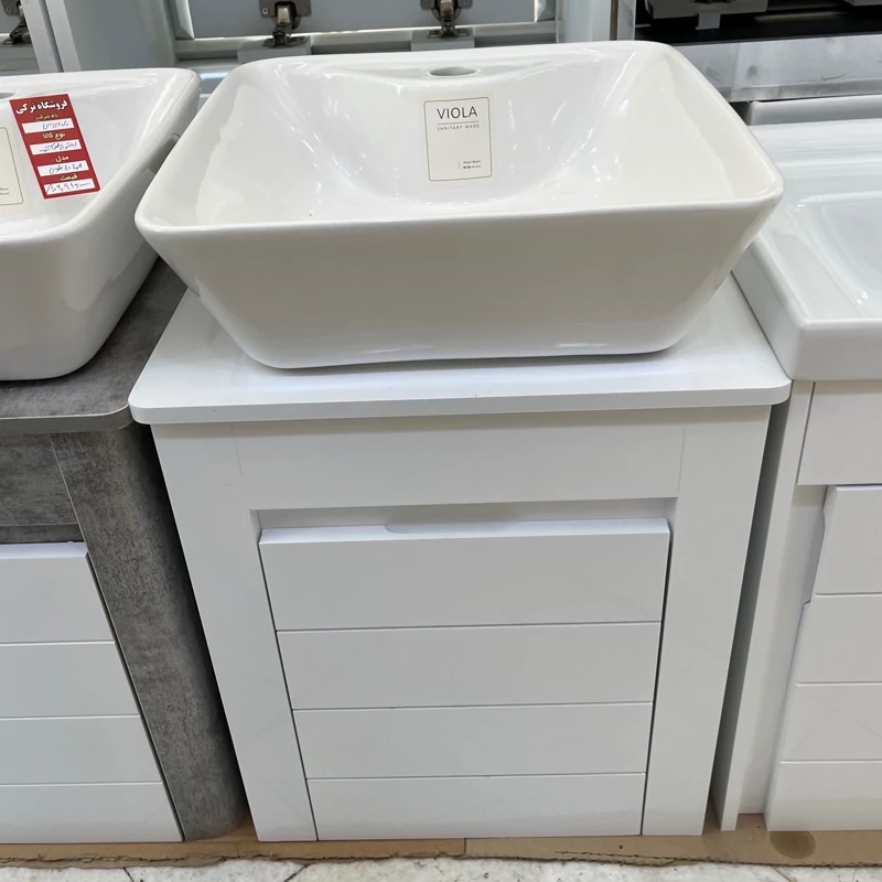 روشویی کابینتی pvc ضد آب با ضمانت اصالت رنگ سفید لولا و درب آرام بند سنگ روشویی درجه یک با لعاب براق از بهترین برند ایران برند ویولا سایز محصول 40 در 40 ارسال به سراسر کشور