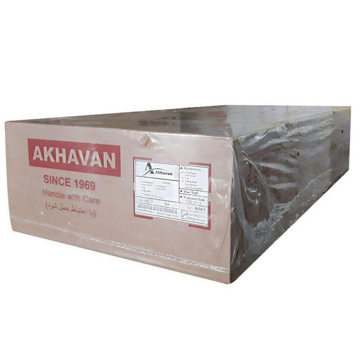 سینک اخوان توکار 162 دارای ابعاد 120 x 60 سانتی متری ساخته شده با ورق دارای ضخامت 0/8 میلیمتری و طراحی زیبا، همراه با سیفون و زیرآب به همراه با قطعات پلاستیکی جانبی و دارای سینی, سبد میوه شور و تخته گوشت پلاستیکی