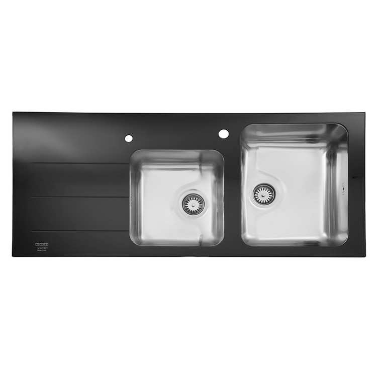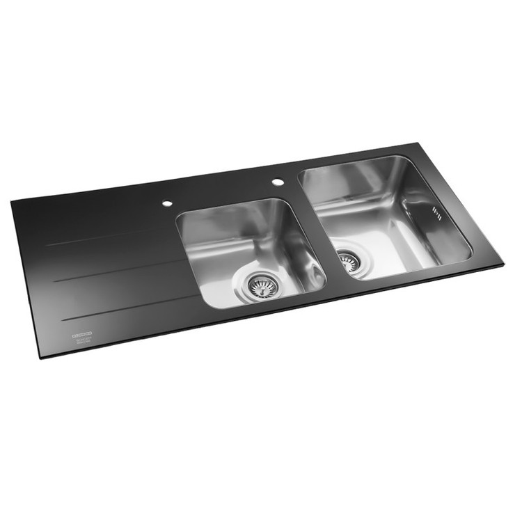 ابعاد دقیق سینک 123x53 سانتی متر می باشد. جنس لگن ها استیل 18/10 و جنس صفحه شیشه سکوریت 8 میلیمتر می باشد.