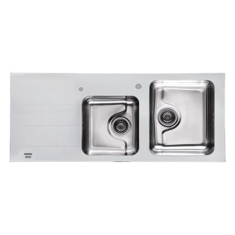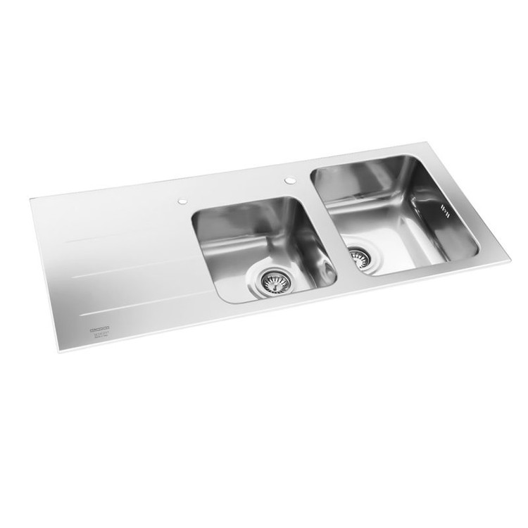 ابعاد دقیق سینک 123x53 سانتی متر می باشد. جنس لگن ها استیل 18/10 و جنس صفحه شیشه سکوریت 8 میلیمتر می باشد.