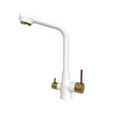 شیر ظرفشویی دو منظوره آوین سفید طلایی برند محصول ایران گروه میباشد با ۷ سال گارانتی معتبر و استاندارد ملی ایران تنه برنجی سنگین و آبکاری درجه یک همراه با لوازم و اتصالات نصب دارای دو خروجی آب شهری و قابلیت نصب تصفیه آب ارسال به سراسر کشور