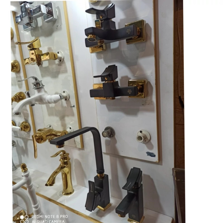 ست چهار تایی شیرآلات فلت مشکی طلایی برند ایران گروه با ۷ سال گارانتی معتبر و استاندارد ملی ایران تنه برنجی سنگین و آبکاری درجه یک کاتریج پر فشار همراه با لوازم و اتصالات نصب شامل: ۱عدد شیر روشویی- ۱عدد شیر آفتابه - ۱عدد شیر دوش -۱ عدد شیر ظرفشویی ارسال به سراسر کشور در کمترین زمان ممکن