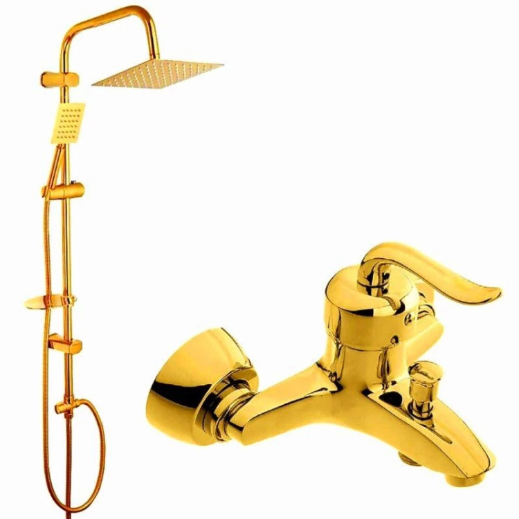 شیر دوش قاجاری طلایی به همراه علم دوش مربع دوکاره طلایی شیرآلات شامل ۵ سال گارانتی شرکتی استاندارد ملی ایران