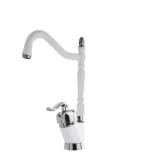 ست کامل شیرآلات قاجاری سفید کروم و علم دوش تک کاره و شیلنگ توالت